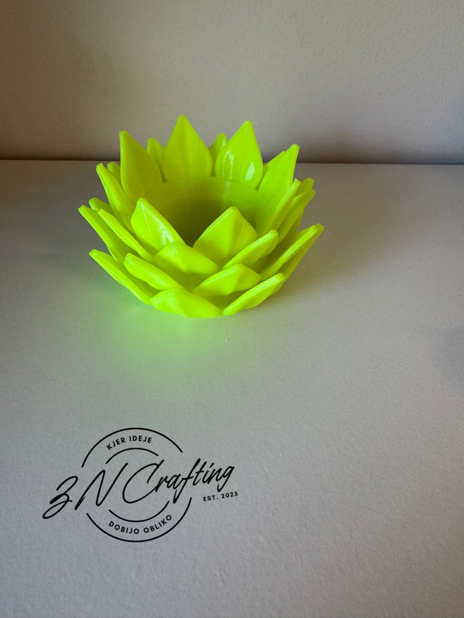 Sijoči Lotos je svečnik, ki s svojo cvetlično obliko in toplino svetlobe vnese čarobnost v vsak prostor. Navdihnjen s simbolom notranjega miru in ravnovesja, je popoln za večerne meditacije, sproščene trenutke ali romantične večerje. Ko vanj postaviš svečko, njegov sij zasije kot cvet v zatonu dneva.