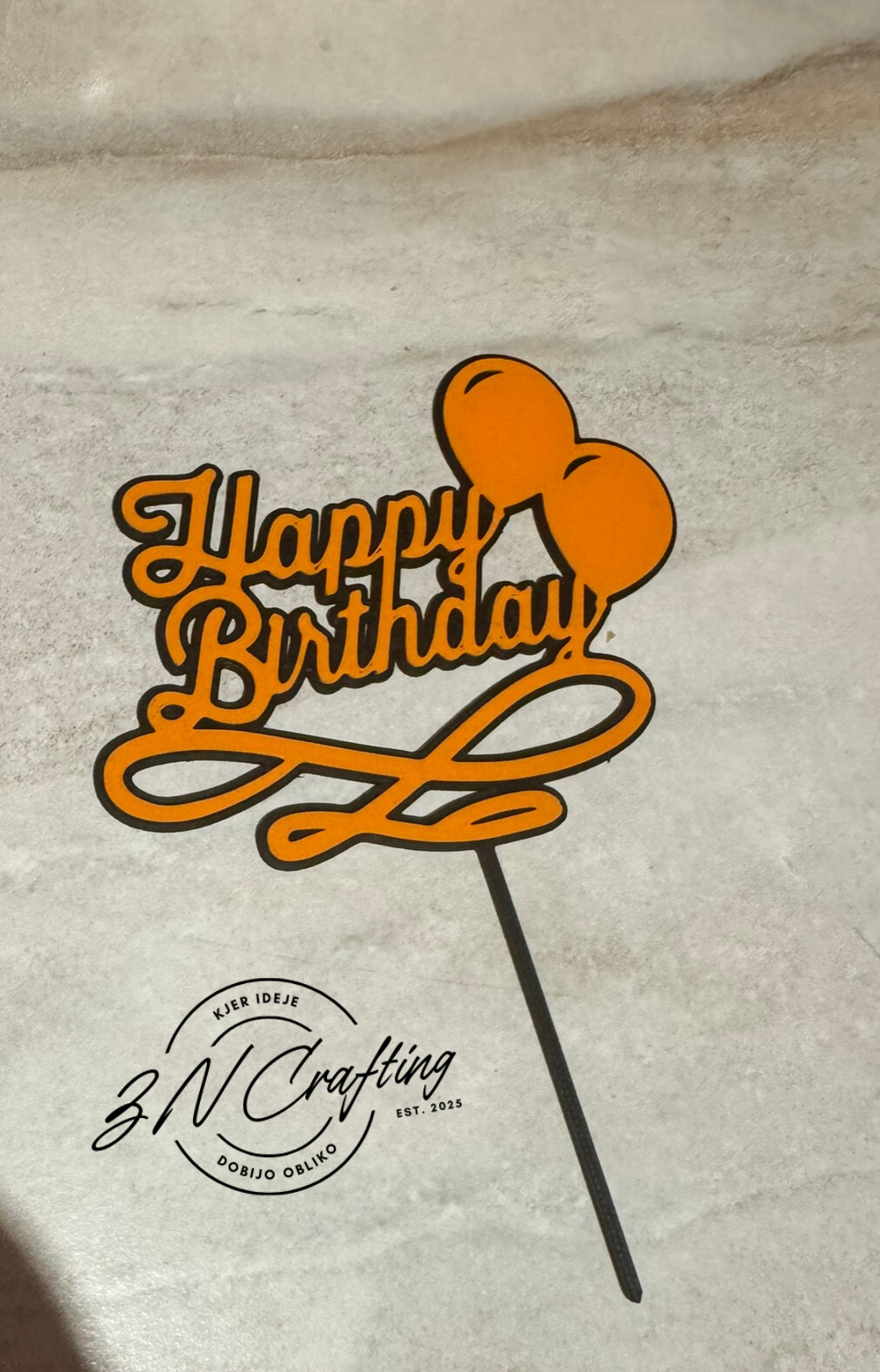 Topper, ki s svojo igrivo podobo pričara praznično vzdušje ob vsaki rojstnodnevni torti. Z živahnimi balončki in elegantnim napisom "Happy Birthday" bo tvoja sladica dobila končni zmagovalni videz. Primeren za vse generacije – od prvih rojstnih dni do zlatih jubilejev. Preprosto zapičiš in že pritegne vse poglede! Odličen je tudi kot dodatek darilu ali dekoracija na mizi.