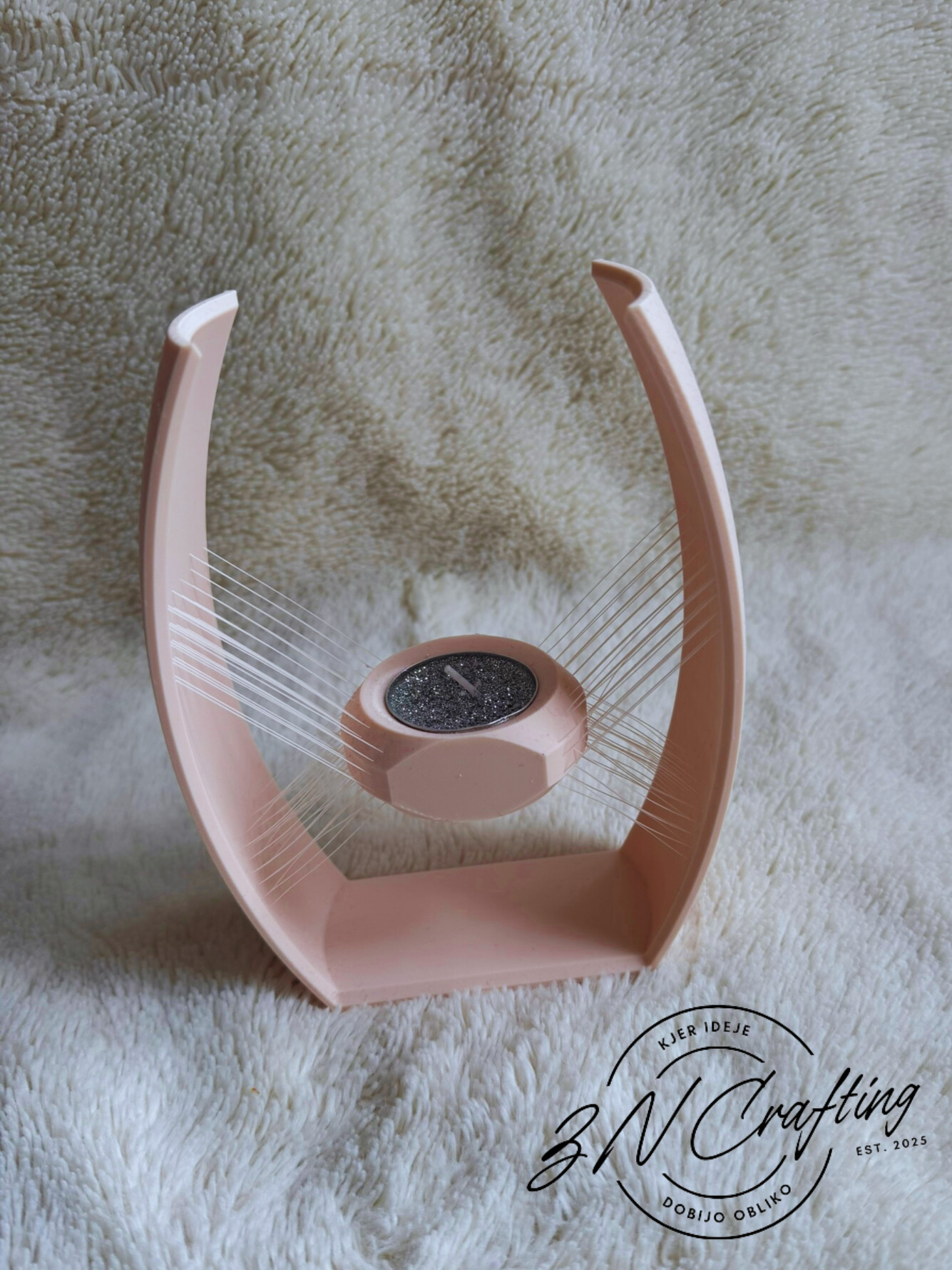Unikaten svečnik, ki združuje eleganco in tehnološko iluzijo lebdenja. Z nežnimi strunami ustvarja čarobno igro svetlobe in senc ter postane osrednji dekorativni kos v vsakem prostoru. Dovršen dizajn, ki združuje estetiko in inovativnost.