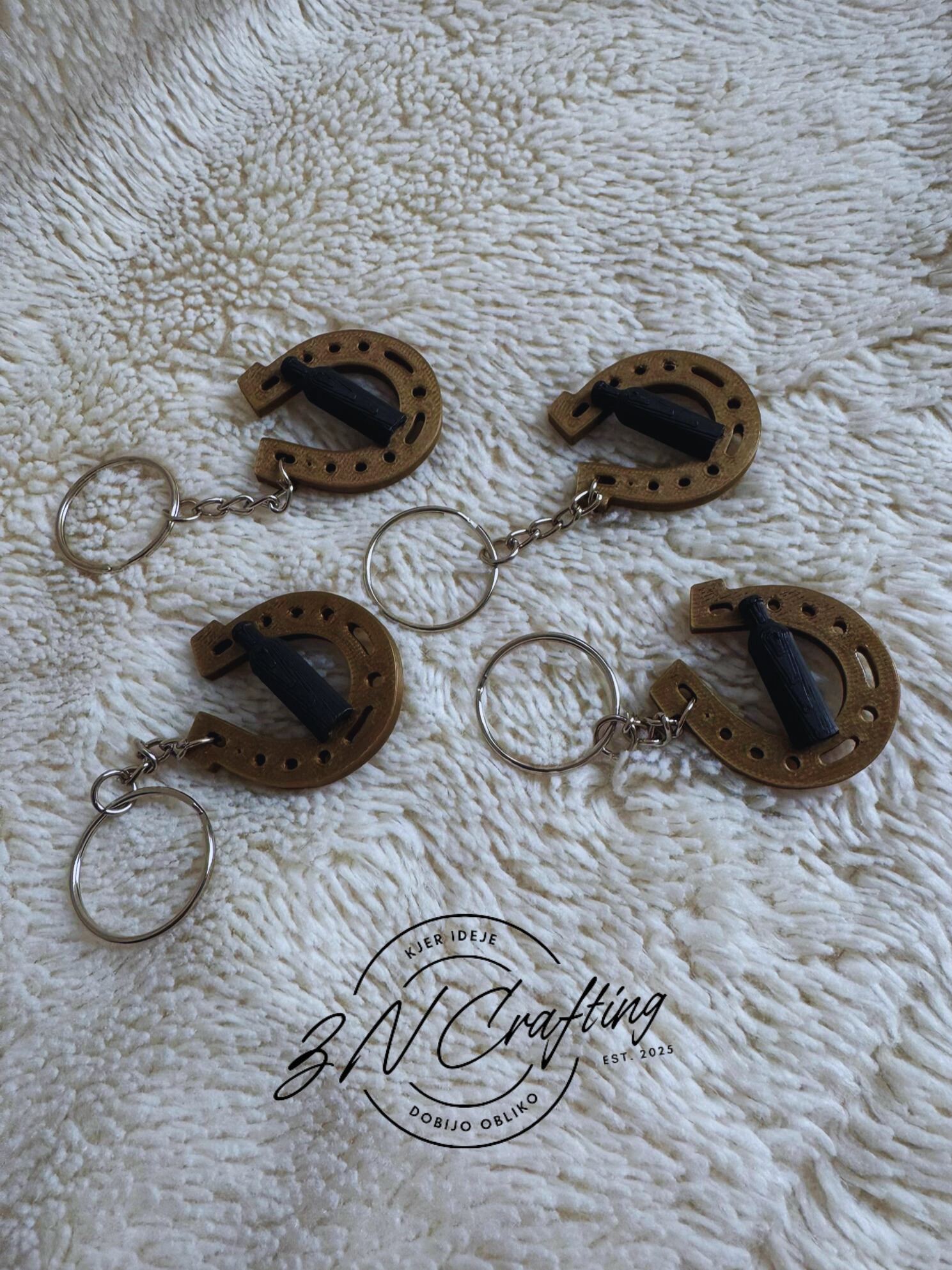 Unikaten obesek v obliki podkve, simbol sreče in zaščite, dopolnjen z detajlom konjeniškega stremena. Popoln dodatek za ljubitelje konj in vse, ki verjamejo v moč simbolov. Praktičen in estetski obesek, ki bo krasil vaš ključ ali torbo.